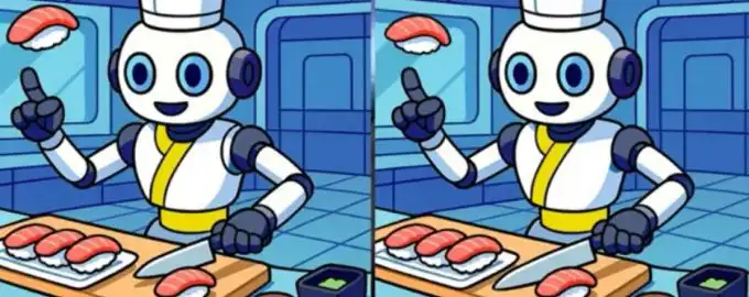 Ova zagonetka testira vašu pažnju i sposobnost uočavanja detalja usporedbom dvije naizgled identične slike sushi robota. Ključ je u sustavnom pregledu