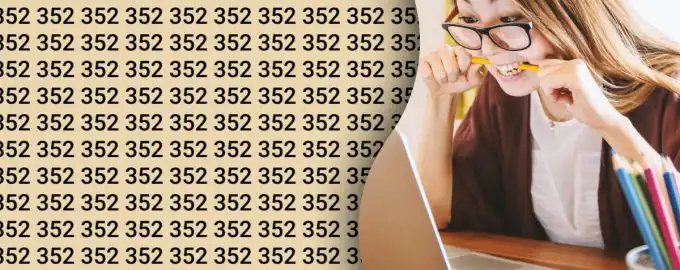 Ova optička zagonetka testira vašu pažnju i brzinu percepcije do granica. Među monotonim poljem brojeva 352, skriva se samo jedan broj 362.