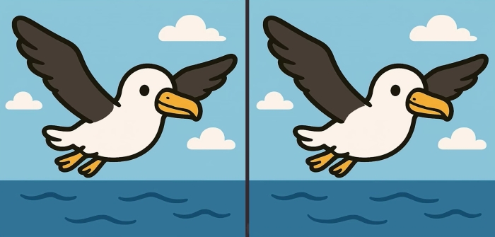 Ako vam je vrijeme isteklo ili jednostavno želite provjeriti svoje zaključke, evo gdje se kriju tri razlike. Prva razlika je u obliku oblaka koji se nalazi iznad ptice – na jednoj slici je nešto izduženiji. Druga razlika je u valovima ispod ptice; jedan val ima drugačiji oblik. Treća, i možda najsuptilnija razlika, je u repnom perju ptice – na jednoj slici fali jedan detalj perja. Svaka pronađena razlika govori o vašoj sposobnosti fokusiranja na specifične detalje unutar šire slike.