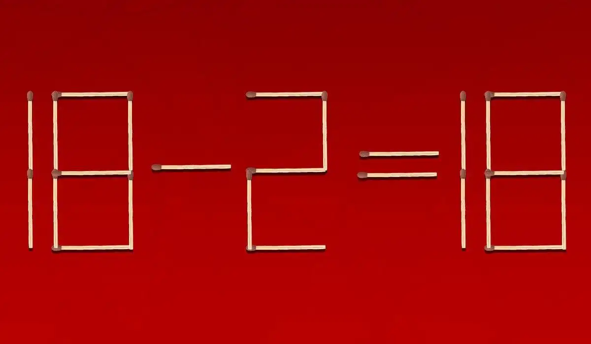 Ova klasična zagonetka s šibicama testira vašu sposobnost promjene perspektive i brzog logičkog razmišljanja. Naizgled nemoguća jednadžba 18-2=18 postaje savršeno točna pomoću samo jednog poteza – ključ je u tome da vidite kako jedan simbol može promijeniti cijelu priču.