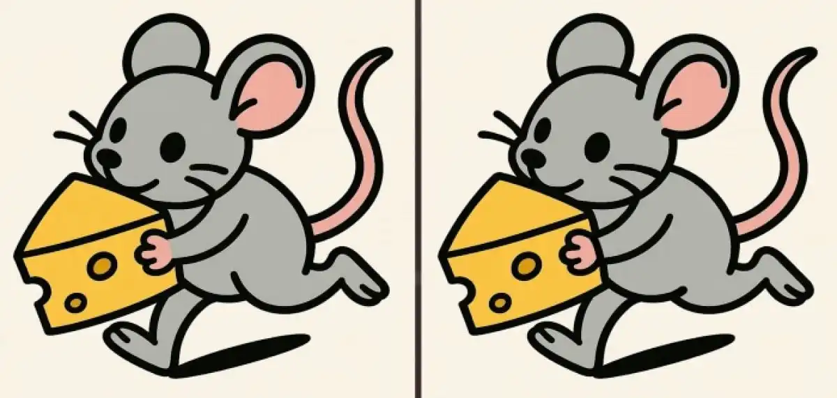 Ova zagonetka testira vašu pažnju i brzinu percepcije. Pred vama su dvije naizgled identične slike miša sa sirom, ali tri detalja su promijenjena. Vaš je izazov pronaći ih sve u roku od samo 31 sekunde. Ključ je u sustavnom pregledu i usporedbi svakog segmenta slike.