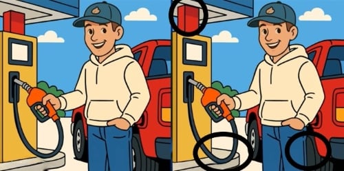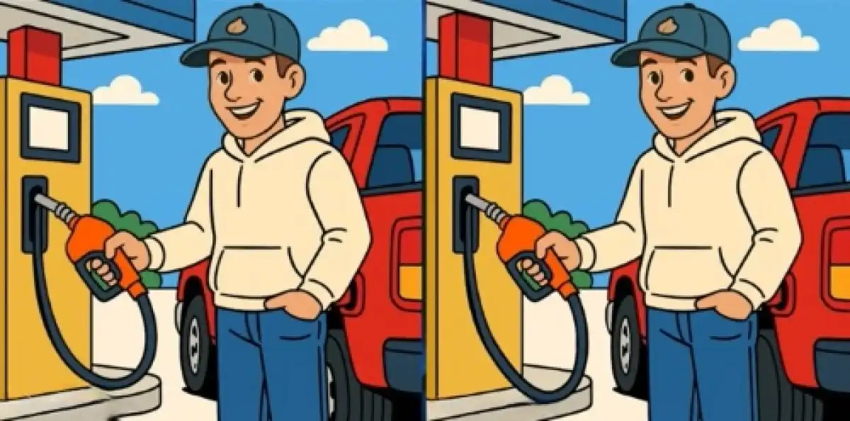 Ova vizualna zagonetka testira vašu pažnju na detalje i brzinu percepcije. Na dvije naizgled identične slike čovjeka na benzinskoj postaji skrivene su tri razlike. Možete li ih sve pronaći u roku od 39 sekundi? Ključ je u sustavnom pregledu svakog segmenta slike.