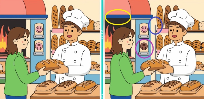 Ova zagonetka testira vašu pažnju i brzinu percepcije. Dvije naizgled identične slike pekare kriju tri suptilne razlike. Možete li ih sve otkriti prije nego što istekne vrijeme? Ključ je u sustavnom pregledu svakog dijela scene.
