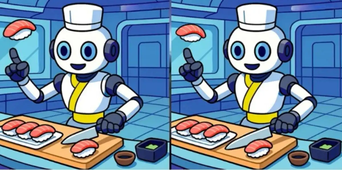 Ova zagonetka testira vašu pažnju i sposobnost uočavanja detalja usporedbom dvije naizgled identične slike sushi robota. Ključ je u sustavnom pregledu svakog segmenta slike, jer se razlike često skrivaju u neočekivanim mjestima.