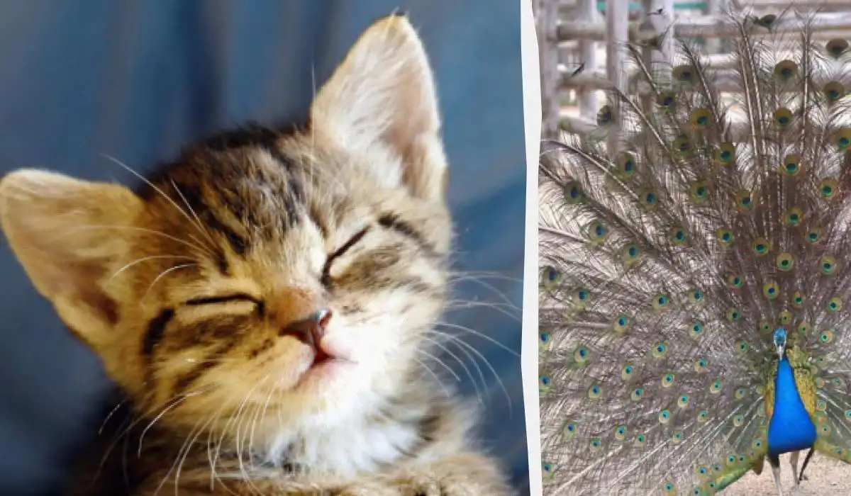 Ova optička iluzija testira vašu pažnju i brzinu percepcije. Na slici s velikim paunom skriva se mačić. Ključ je u tome da ne dopustite da vam dominantni element – paun – “pojede” pozornost. Rješenje je blizu, ali zahtijeva promjenu fokusa.