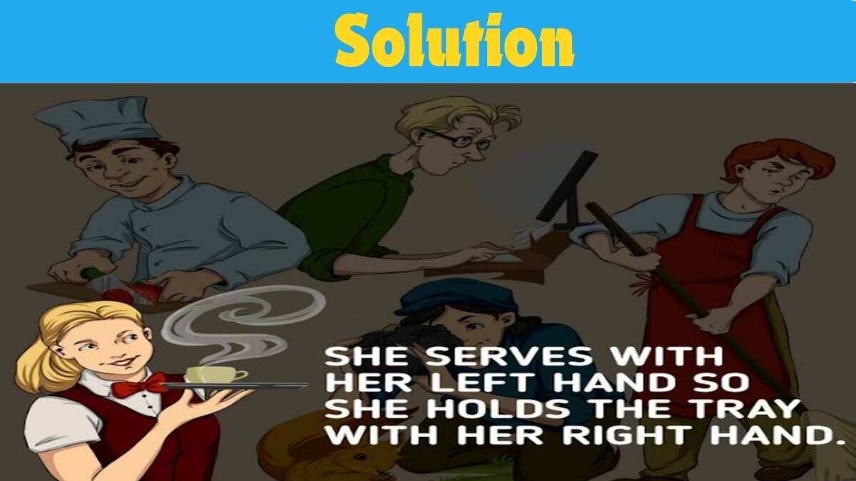 Ako ste i dalje u nedoumici, vrijeme je za rješenje. Ljevak na slici je konobarica koja stoji u sredini. Zašto? Djevojka u plavoj haljini drži pladanj s kavom u desnoj ruci. To znači da joj je desna ruka zauzeta držanjem tereta. Međutim, glavna radnja – postavljanje šalice na stol – izvodi se njenom lijevom rukom. Upravo taj sekvencijalni pokret (držanje pladnja dominantnom, a radnja nedominantnom rukom je neuobičajen) otkriva da je lijeva ruka njena dominantna, odnosno radna ruka. Ona je ljevak.