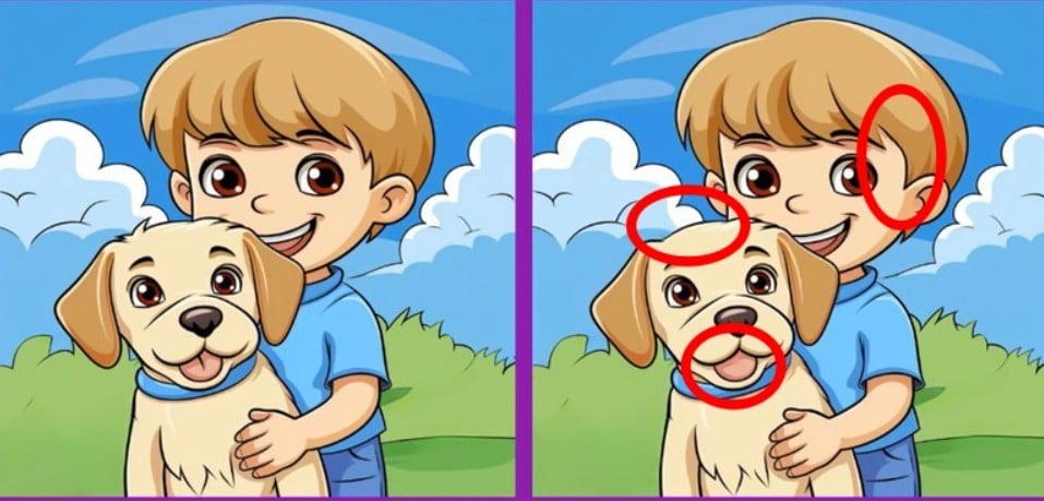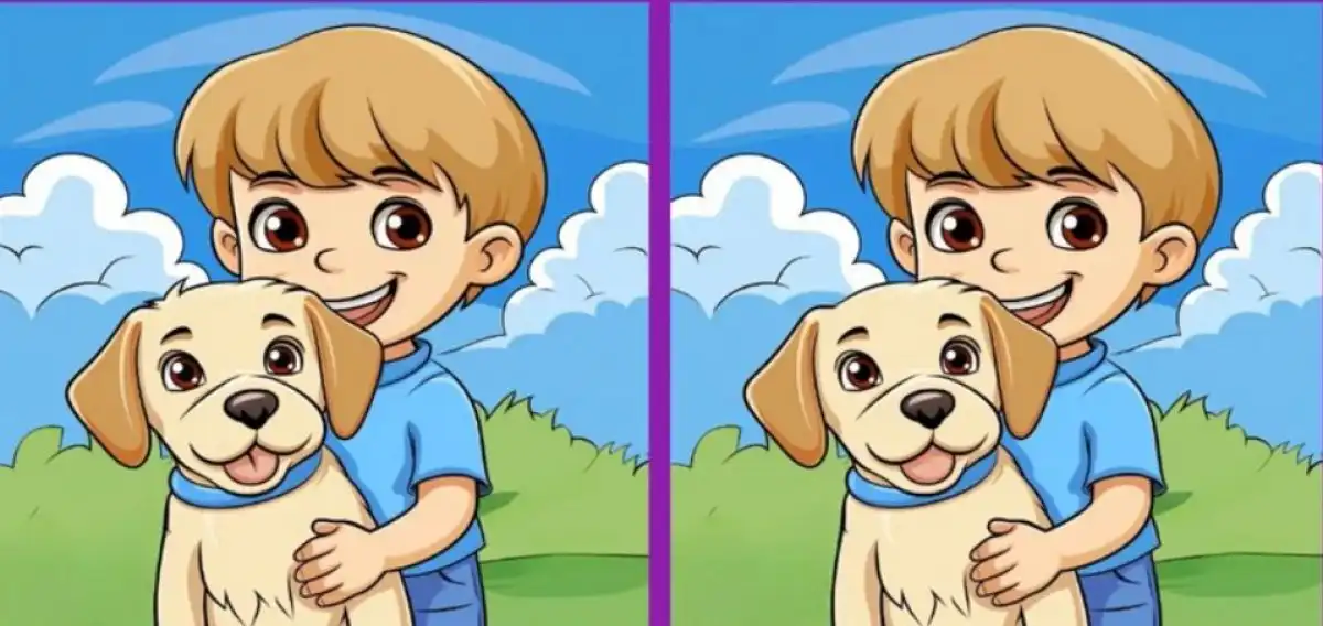 Ova klasična zagonetka testira vašu pažnju i brzinu percepcije. Dvije naizgled identične slike dječaka sa psom kriju tri suptilne razlike. Ključ je u sustavnom pregledu i usporedbi svakog segmenta – od krova kuće do detalja na odjeći psa. Možete li ih sve pronaći za manje od 50 sekundi?