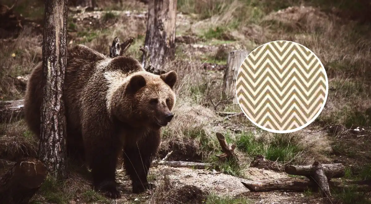 Rješenje: Medvjed je kamufliran u središtu slike. Njegova glava je okrenuta prema donjem desnom kutu. Ako zamislite da su tamnije zone kora drveta i sjenke zapravo dijelovi njegovog tijela, možete prepoznati cijelu siluetu. Veliki oblik koji čini njegovo tijelo formira se od više stabala – njegov leđa su gornji luk, a donji dio tijela se spaja s donjim dijelovima kompozicije. Glavni trik je u tome što naš mozak prvo registrira pojedinačna stabla, a tek onda, promjenom fokusa, uočava da ti detalji zajedno čine jednu veliku cjelinu.