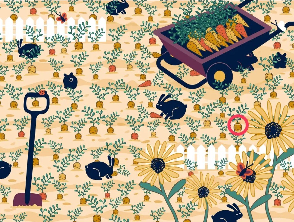 Na farmi punoj zečeva i mrkve izgubljen je dragocjeni dijamantni prsten. Vaš zadatak je pronaći ga u samo 13 sekundi, što zahtijeva iznimnu pažnju i sposobnost brzog uočavanja detalja među brojnim sličnim elementima. Ključ je u promatranju središnjeg dijela scene.