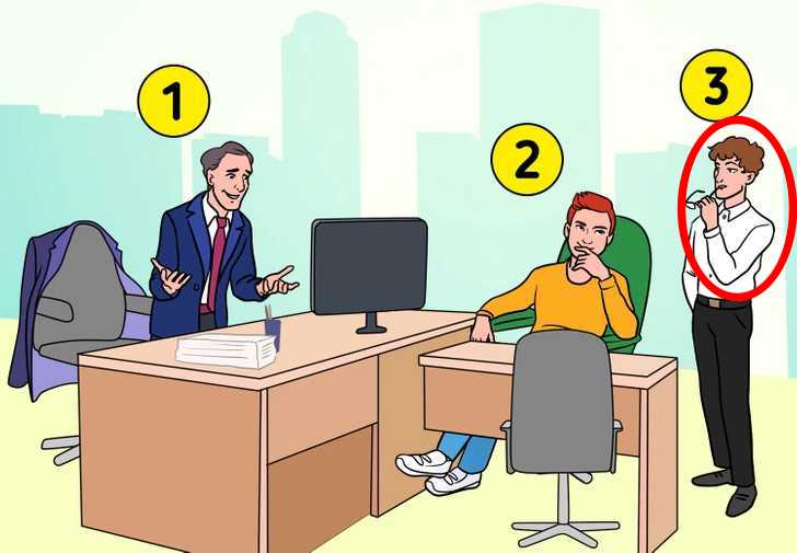 Ova zagonetka testira vašu pažnju i sposobnost čitanja neverbalnih znakova. Na prvi pogled, sva tri muškarca izgledaju slično, ali jedan detalj na slici jasno otkriva hijerarhiju. Ključ je u tome što šefovi često imaju drugačiji odnos prema prostoru i predmetima oko sebe.