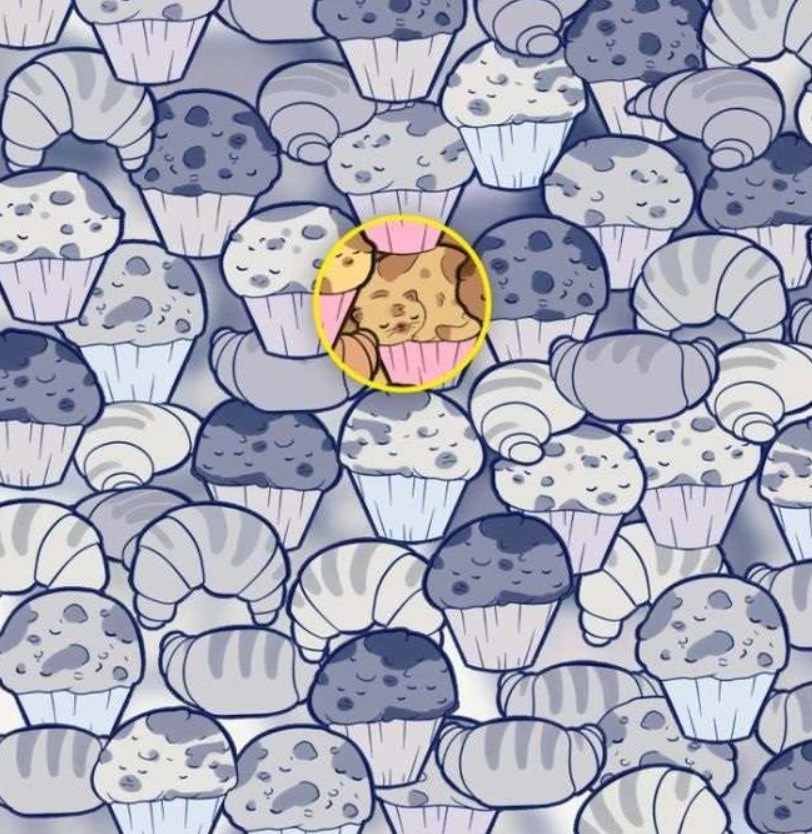 Ova vizualna zagonetka testira vašu pažnju i brzinu percepcije na neobičan način: među desecima ukrasa na kolačićima koji podsjećaju na mačje oči i uši, skriva se jedna prava mačka. Ključ je u prepoznavanju anatomskog detalja koji kolačići jednostavno ne mogu imati.