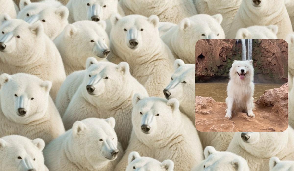 Često se u procesu selekcije susrećemo s situacijama gdje moramo brzo i točno identificirati specifičan talent među brojnim kandidatima. Slično je i s ovom vizualnom zagonetkom. Na prvi pogled, svi bijeli likovi izgledaju jednako – kao simpatični polarni medvjedi. Međutim, vaš zadatak je pronaći onog jednog “kandidata” koji se ne uklapa u obrazac, a to je pas samojed. Što vas ometa? Pogreška percepcije zbog slične boje i teksture, te brzina kojom mozak generalizira slične objekte. Jeste li spremni testirati svoju opažajnost?