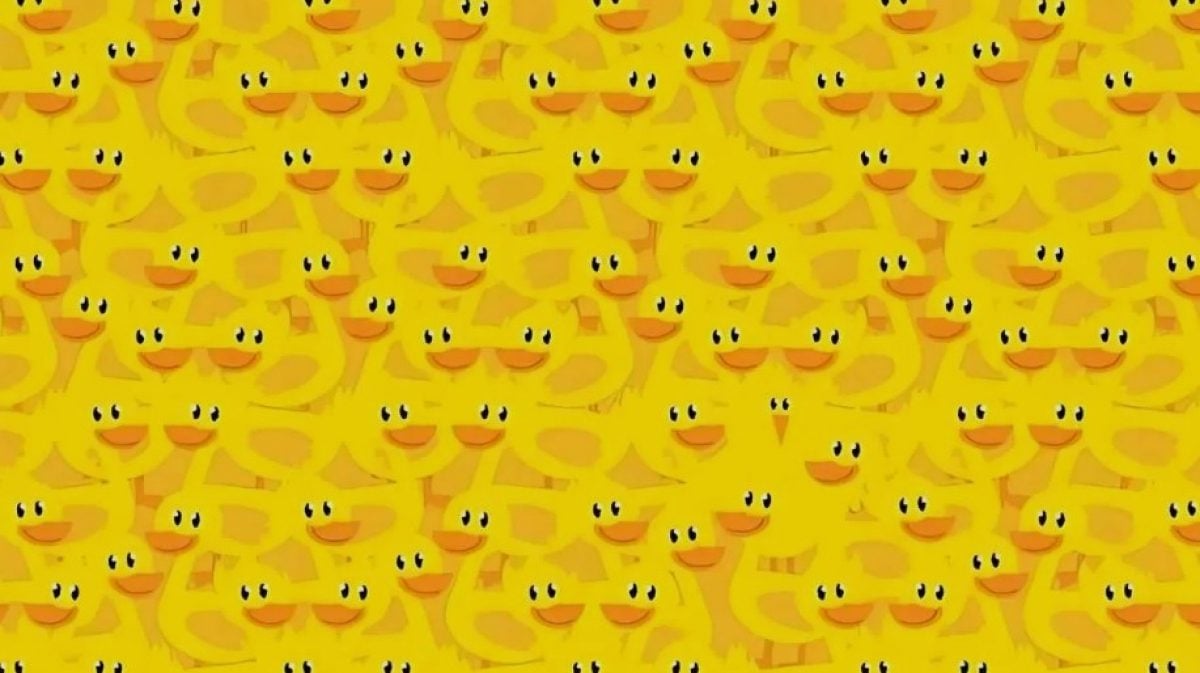 Ova optička iluzija testira vašu sposobnost brzog uočavanja detalja i prepoznavanja patrona među sličnim elementima. Među gustom skupinom pataka skriva se jedna kokoš, a ključ za njeno pronalaženje leži u promjeni perspektive i fokusiranju na specifične detalje, a ne na cjelinu.