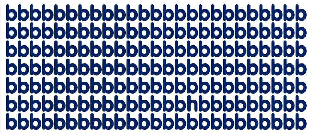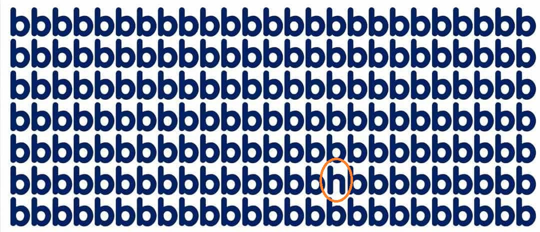 Evo i rješenja. Ako pogledate drugi red slova odozgo, primijetit ćete da je jedno od slova “b” zapravo obrnuto – to je slovo “d”. Naša percepcija, naviknuta na uzorak, automatski ispravlja ovu grešku, a mozak je preskače. To je klasičan primjer kognitivne pristranosti i automatizma u procesiranju informacija.