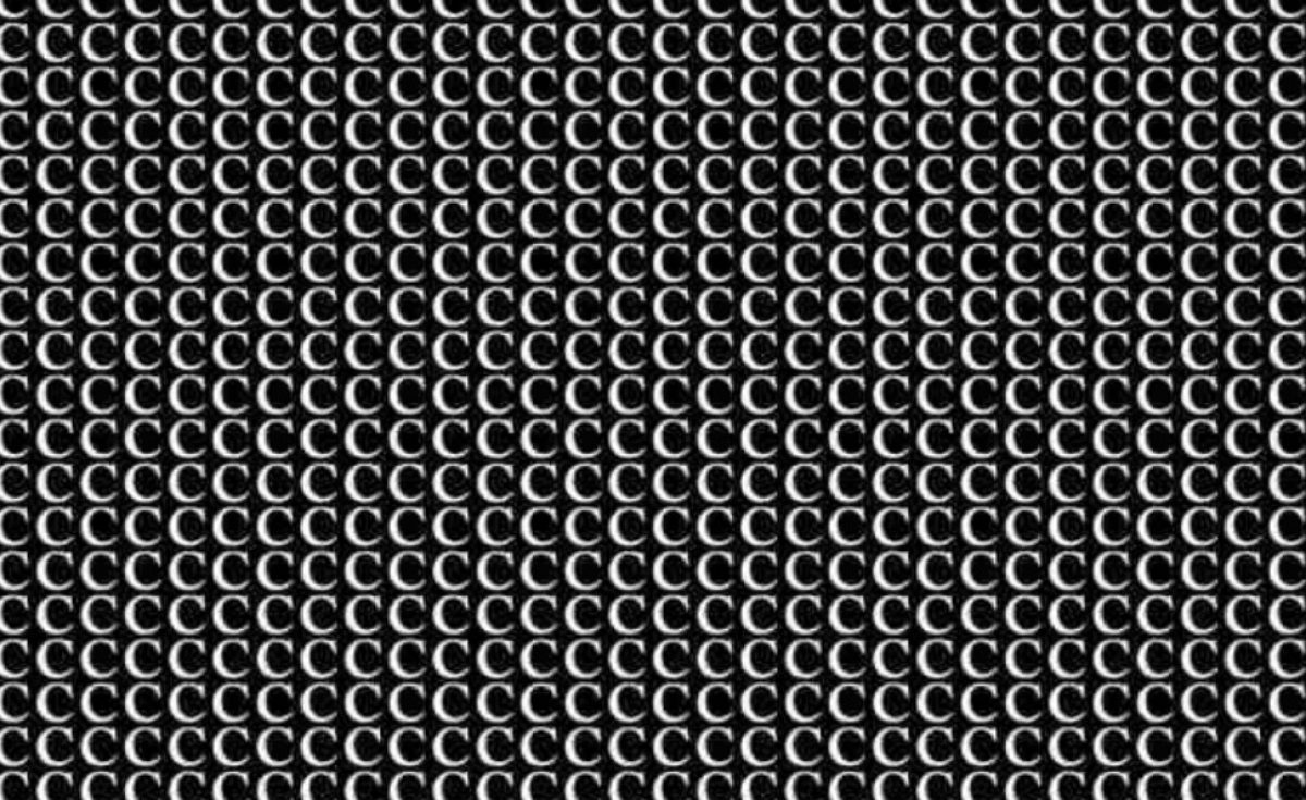 Ova optička iluzija testira vašu pažnju na detalje i brzinu percepcije. Među hrpom slova ‘C’ skriva se jedno slovo ‘G’. Ključ je u tome da ne gledate sliku kao cjelinu, već da skenirate redove ili stupce pojedinačno, tražeći onaj jedini element koji krši očekivani obrazac.