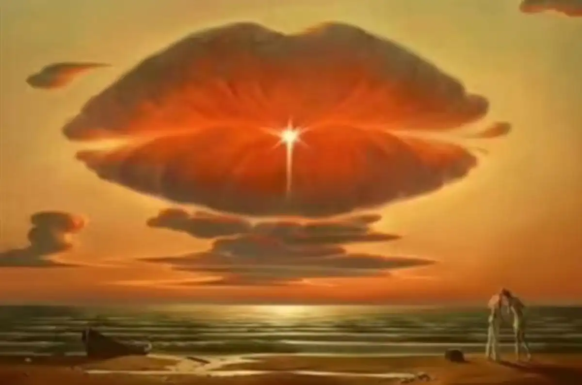 Ova slika je klasičan primjer dvoznačne figure. Umjetnički je stvorena tako da koristi iste linije i kontraste kako bi predstavila dva potpuno različita objekta. Crveni obris u sredini može biti obris usana, ali isti taj obris, zajedno s tamnijim dijelovima iznad, može stvoriti iluziju oblaka obasjanih zalazećim suncem. Vaš mozak, naviknut na brzo donošenje zaključaka, bira ono što mu je prirodnije ili ono na što je trenutno usredotočen. Nema “točnog” odgovora, ali postoji objašnjenje zašto vidite ono što vidite.