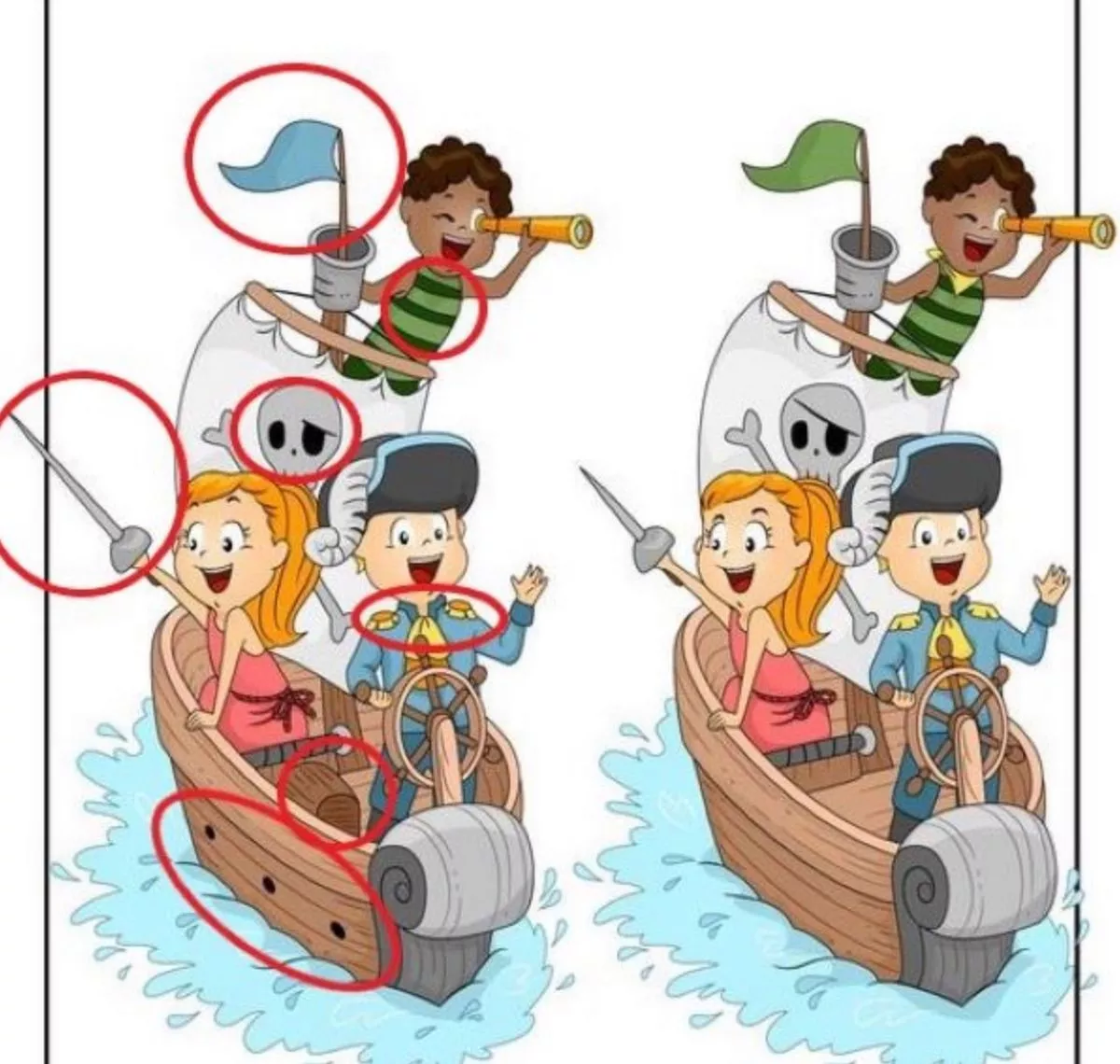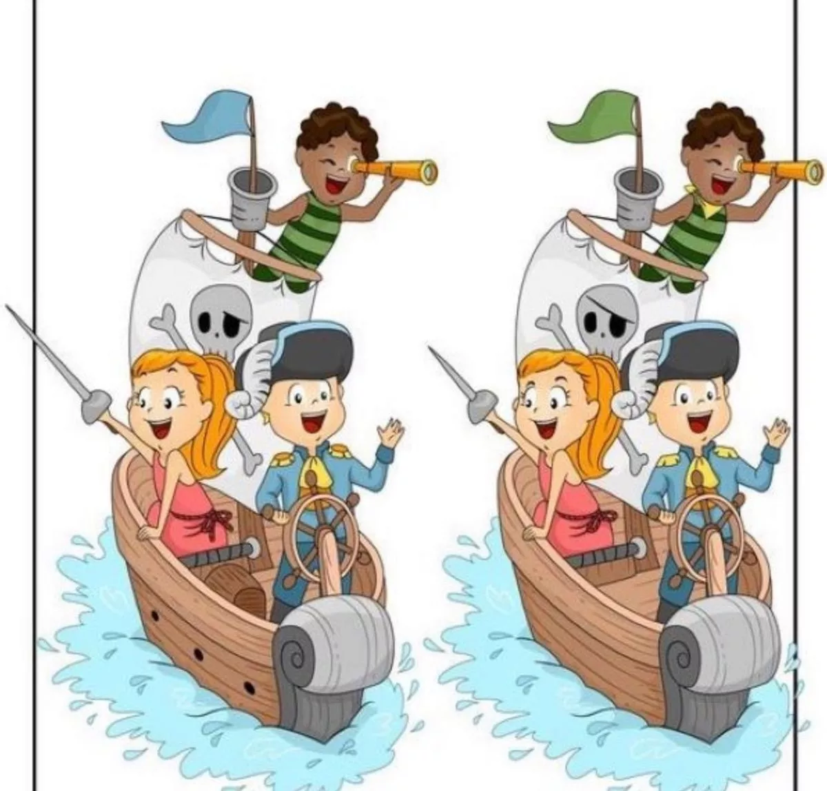 Ova piratska zagonetka testira vašu pažnju i brzinu percepcije: na dvije naizgled identične slike piratskog broda skriva se sedam razlika koje morate pronaći u samo 21 sekundi. Ključ je u sustavnom pregledu i izbjegavanju očiglednih područja.
