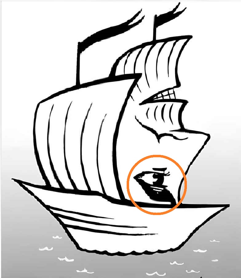 Da biste to jasno vidjeli, potrebno je fizički ili mentalno okrenuti sliku. U tom položaju, skrivena silueta broda i mornara postaje izrazito očita. Cijela poanta je u perceptivnoj predodžbi – naš mozak je navikao vidjeti lica, pa tu sliku i prepoznaje prvu. Tek kada aktivno promijenimo kontekst, otkrivamo drugu, skrivenu sliku.