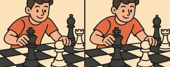 Ova zagonetka testira vašu pažnju i brzinu percepcije. Dvije naizgled identične slike šahista kriju tri suptilne razlike. Ključ je u sustavnom pregledu