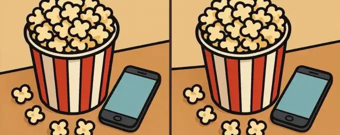 Ova vizualna zagonetka testira vašu pažnju i brzinu percepcije. Dvije naizgled identične slike s kokicama kriju tri suptilne razlike. Ključ je u sustavnom