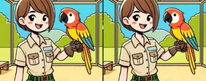 Ova vizualna zagonetka testira vašu pažnju na detalje i brzinu percepcije. Dvije su naizgled identične slike djevojčice s papigom, ali među njima se kriju