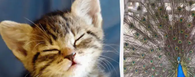 Ova optička iluzija testira vašu pažnju i brzinu percepcije. Na slici s velikim paunom skriva se mačić. Ključ je u tome da ne dopustite da vam dominantni element.