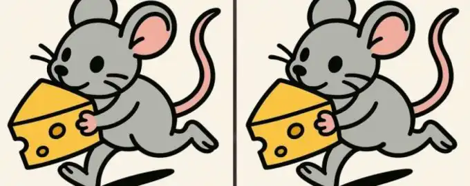Ova zagonetka testira vašu pažnju i brzinu percepcije. Pred vama su dvije naizgled identične slike miša sa sirom, ali tri detalja su promijenjena.